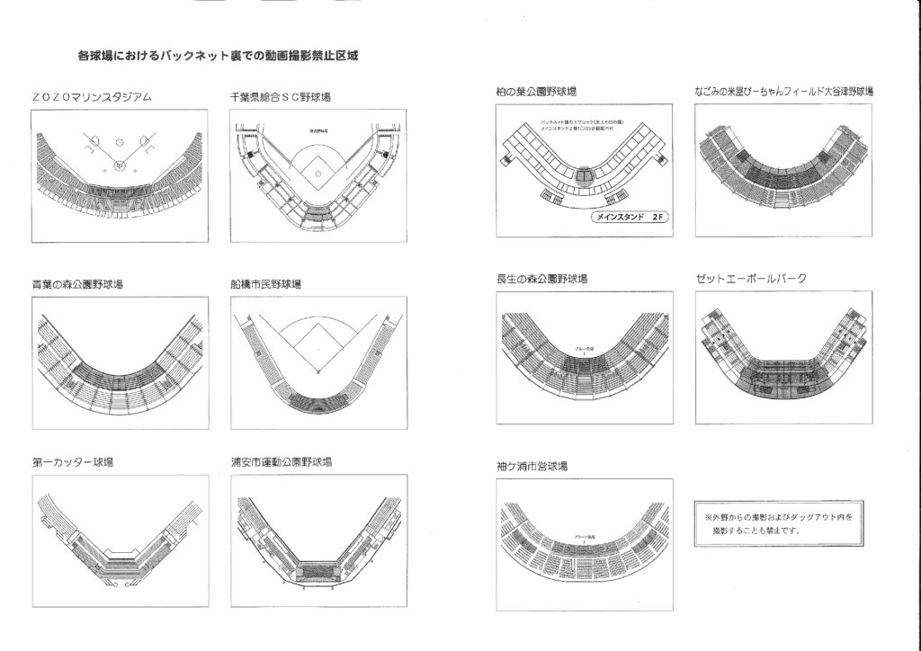 - 球場ごとに指定された「バックネット裏動画撮影禁止区域」内で撮影すること